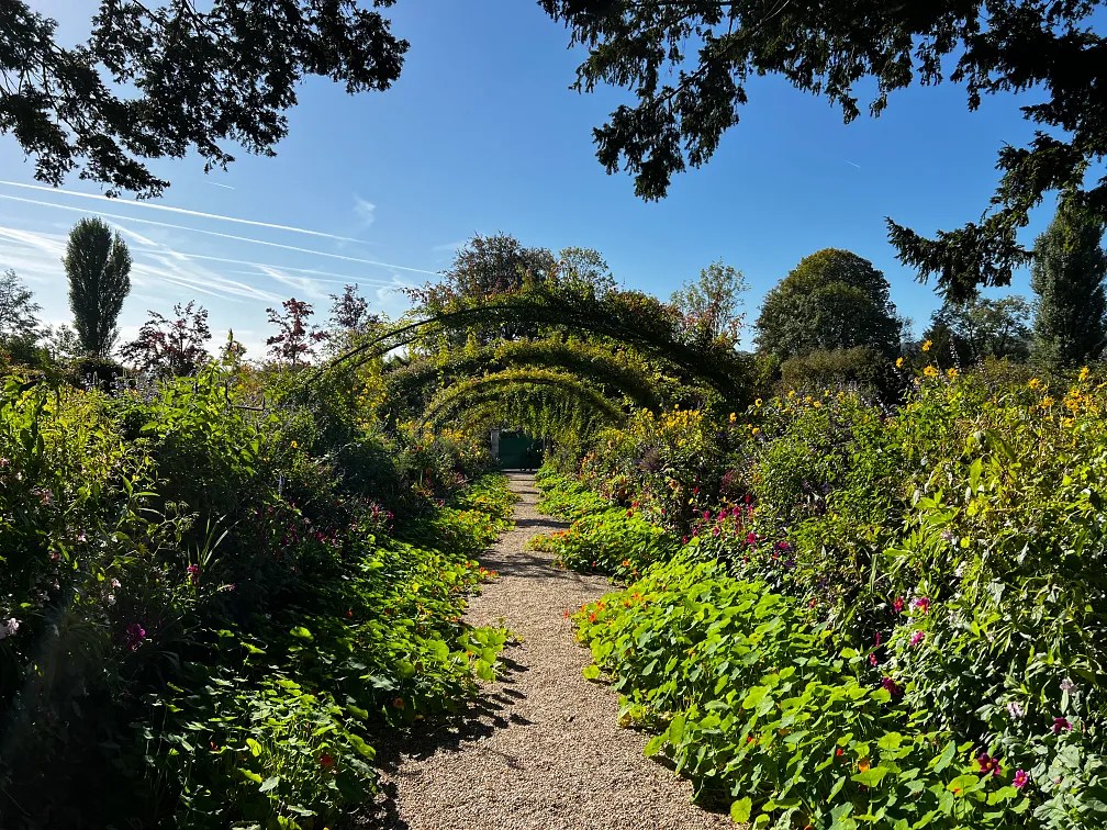 Each season has a distinct palette. Spring, the soft pinks of tulip and apple blossom. Summer, the deep purples of aubrieta and bearded iris lined pathways. Fall, the sharp yellows of tall black-eyed Susans and decaying Sycamore Maple leaves against the crisp blue sky. Green always has a home in Monet’s garden. There are more shades of green than there are names to give them. It is no wonder that this garden defined a new way for Monet to see, and paint, color, one which gave all succeeding artists a new visual vocabulary. Some of Monet’s compositions are, “so vibrantly colored that they elude a direct connection with nature and suggest pure sensory experience in its place.”